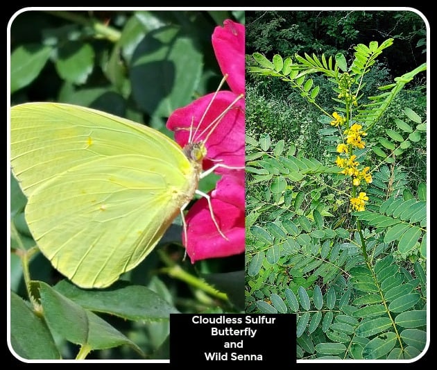 4. Wild Senna Senna marilandica The Cloudless Sulfur Butterfly uses this perennial native as a host plant. It is a stately perennial, with a unique look and texture. It grows 3 to 6 feet tall and 3 feet wide, in full to part sun. It blooms in summer, in part to full sun locations.