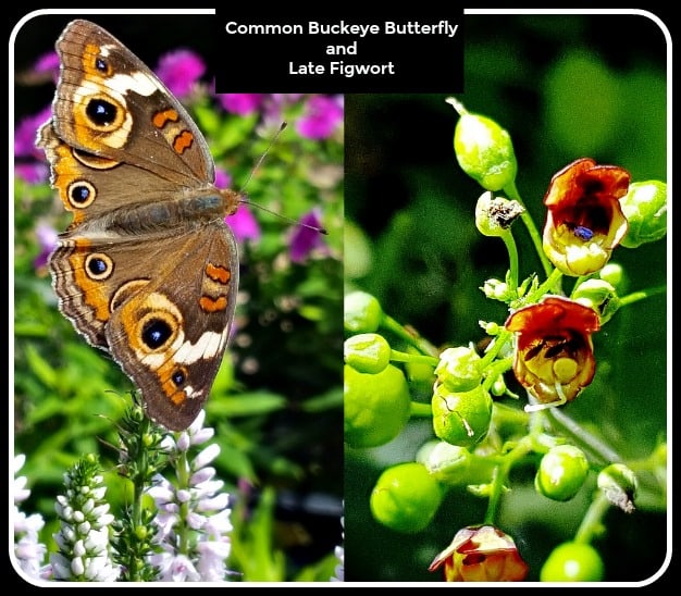 10. Late Figwort Scrophularia marilandica The Common Buckeye Butterfly is a frequent flyer in late summer. It uses figwort as one of its larval hosts. Figworts grow 2 to 6 feet tall and 2 feet wide. They bloom in late summer and autumn with small, red flowers. They can be planted in part sun locations in the woodland garden.