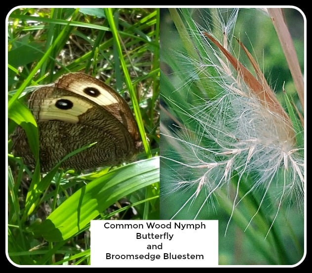 12. Bluestem Grasses Andropogon species Common Wood Nymph Butterflies use various grasses including members of the bluestem family. There are 3 or 4 bluestems commonly scattered across the U.S. They can grow 2 to 8 feet tall and 2 to 3 feet wide. Plant them in full sun in massings.