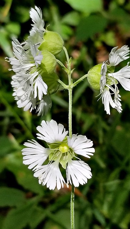 I accidentally found starry campion (Silene stellata) in my woodlands in 2018, while taking trash to the dumpster. This delicate looking native plant can form huge colonies in shade or sun, and really lights up the shade garden. The bright white, starry flowers add just the right amount of color and texture to the garden in July.