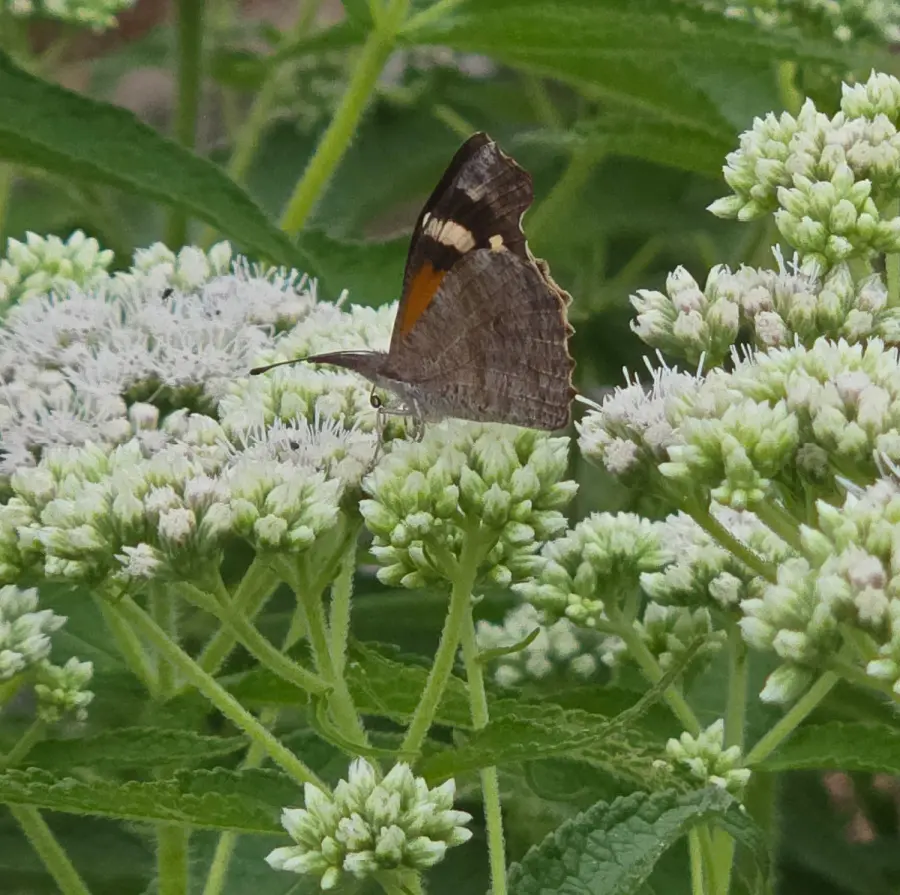 It was a toss up for me between boneset and Joe-pye weed. But it came down to bloom length. Common boneset is more of a fall bloomer, usually blooming from late August into September. Joe-pye weed blooms primarily for only a few weeks in July. And Joe-pye weed primarily attracts only bumblebees and large butterflies. Common boneset, Eupatorium perfoliatum, is native from the Great Plains east to the Atlantic Ocean. The white flowers attract a wide range of insects and can be found growing in meadows, wet prairies, and along forest edges.