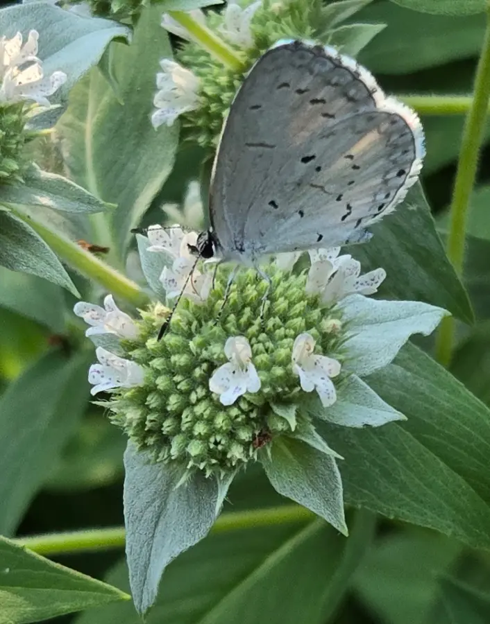 This was the 2025 Perennial Plant of the Year, and nothing deserved it better. Blunt mountain mint, Pycnanthemum muticum, is native to the southeastern US, but is very adaptable and grows well here in the Central Great Plains. In my own garden, it grows around 2 feet tall without irrigation, and 4 feet tall with. You would think that mints are aggressive, but mountain mints are slow spreaders, moving only 1 to 2 feet per year. And they are easy to rip out and relocate if needed.
