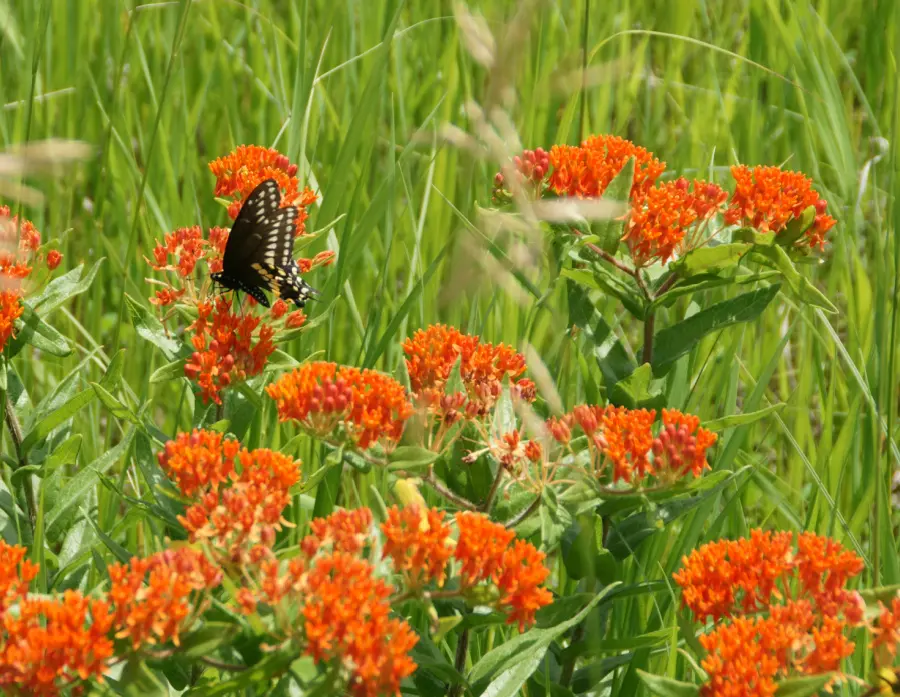 Of all the perennial must-haves for the garden, butterfly milkweed could be the most important. Besides being practically covered with pollinators from May through August, it is the easiest plant to grow in the garden. One of the most common milkweeds in North America, butterfly milkweed is native from the Great Plains eastward to the Atlantic Ocean, and from the Gulf of America north to Canada. The orange flowers are especially attractive, and the plants grow 2 to 3 feet tall and wide.