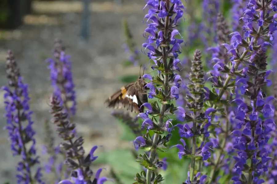 Salvia has hardly any pests, being a member of the mint family, which has strong oils and scents. There are a few moths whose caterpillars will feed on the leaves or roots, and they can get powdery mildew if planted in too much shade or too wet of soil. Pollinators mainly includes bees and butterflies.