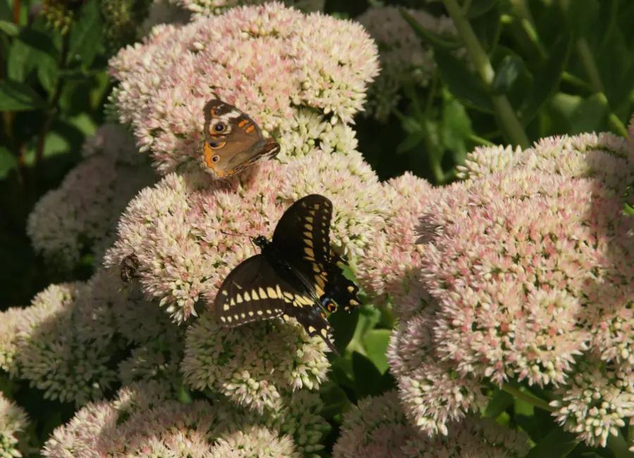 While tall sedum is not prone to pests, it can suffer from aphids if not cleaned up well in spring or fall, and it can get leaf spots if watered with overhead sprinklers. If you plant them in full sun, they should not have any problems, but in shade they tend to split open. Pollinators include a lot of late summer and fall flying insects.