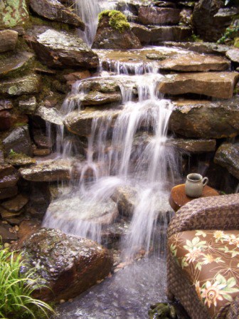 Another thing to remember when putting together a plan for a waterscape is the extra elements everyone loves to add. While gazing balls and garden gnomes may have a place in your landscape, they just do not seem to tie in with the water feature. The use of hollow logs and water worn branches can increase the interest and beauty of the feature. Do not add bird feeders too close to the feature, unless you want to be constantly cleaning filters. Instead, plant viburnums, hollies, and coneflowers – the birds will come in for a drink and stay for supper!