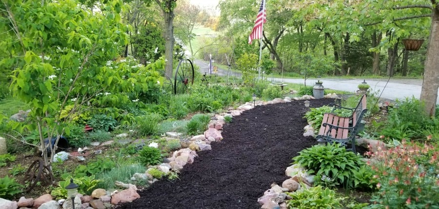 I love the color of this dark brown mulch on my walkways! It really makes the path standout among the fullness of the plants.