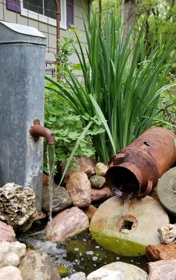 My fountain was up and running this spring. I am going to have to replace the cream can in the fountain, it is rusting through on all sides.