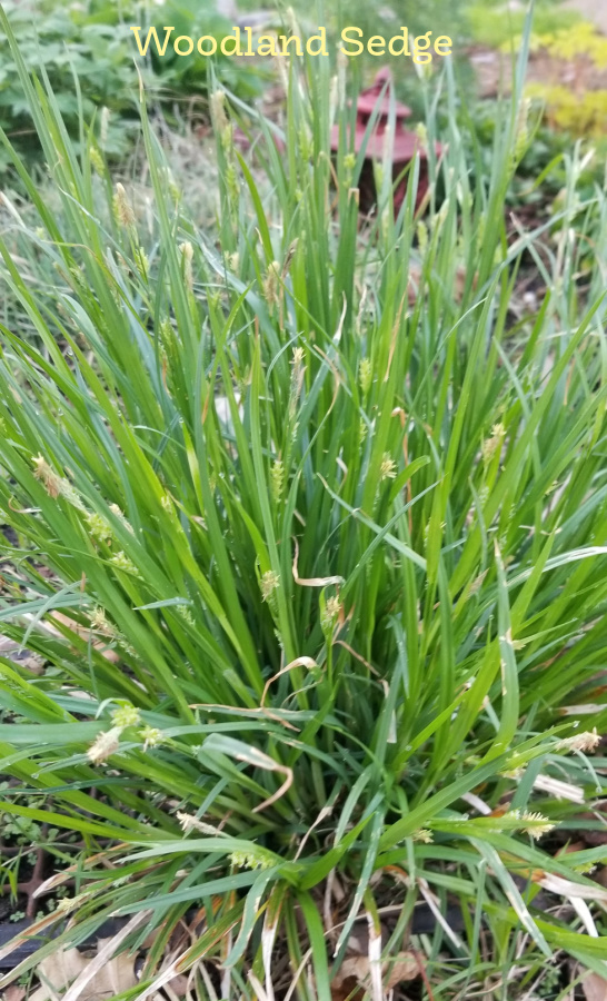 The woodland sedge, Carex blanda, is a common sedge from the eastern Great Plains to the Atlantic seaboard. It grows in part sun to filtered shade. It grows 1 foot tall and wide, with 3/8 inch wide, dark green leaves. I like to keep some woodland sedge in my shade garden because it adds texture that broad-leaved plants cannot give.