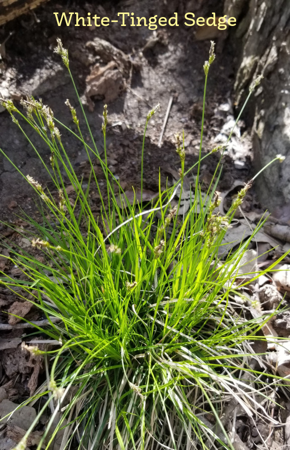 This sedge, Carex albicans, is another woodland grass-like plant. It is native from the eastern Great Plains through the Midwest and along the Atlantic seaboard. It grows 6 to 10 inches tall and wide. I am including it in this list of native grasses for the shade because it grows mainly in dense forests with only filtered sun. It has very fine blades and the early spring flowerheads give it its name.