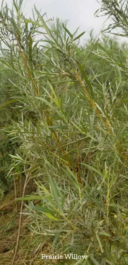 Native to the Eastern half of the US, from Central Kansas eastward, prairie willow is an excellent choice for a large screen. Growing 6 to 16 feet tall and wide, prairie willow is much more drought tolerant than other willows, though it can grow in moist soils. And it responds really well to hard rejuvenation, growing back quickly after a hard cut. Prairie willow is also a great plant for butterflies, with early spring flowers. And they are a host for several species of butterflies and moths, including the Viceroy, the Mourning Cloak, and the red-spotted purple butterfly.