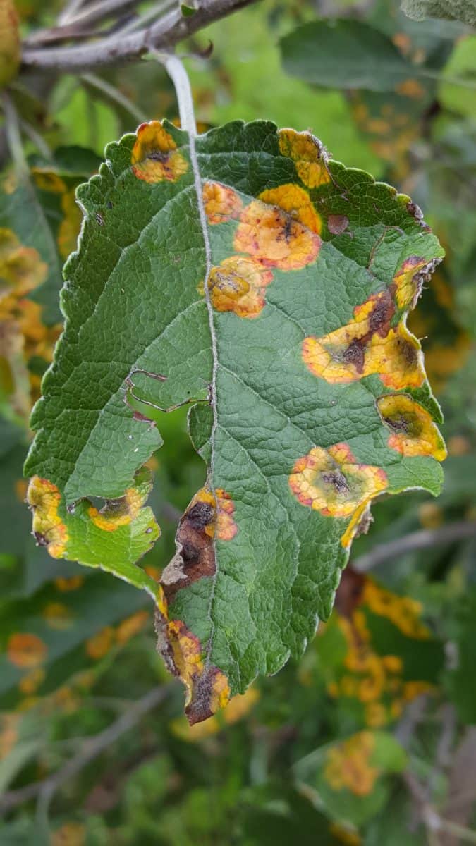 For those of you who have these trees already growing, the best help is to apply a preventative fungicide. This is best done at flowering time in spring. To avoid hurting bees with the fungicides, apply at petal-drop or slightly after. Copper fungicides work best for preventing rusts.