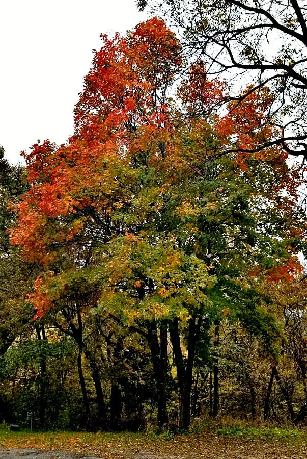 This is 1 of 2 sugar maples in my yard. It must be related to the sugar maples planted around Hiawatha, it has excellent fall color, similar to ‘Oregon Trail’ but with more red than orange. My other sugar maple is pure gold, with no orange or red at all.