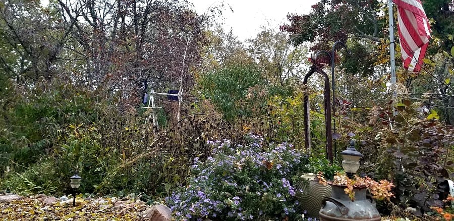 November shot of the Entry Garden, with aromatic aster ‘Raydon’s Favorite’ still blooming away after the first frost. Everything else is going dormant.