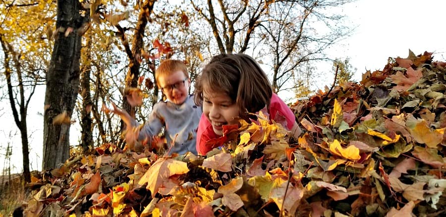 My younger kids enjoying the leaves on a warmer November day!
