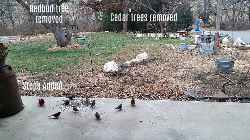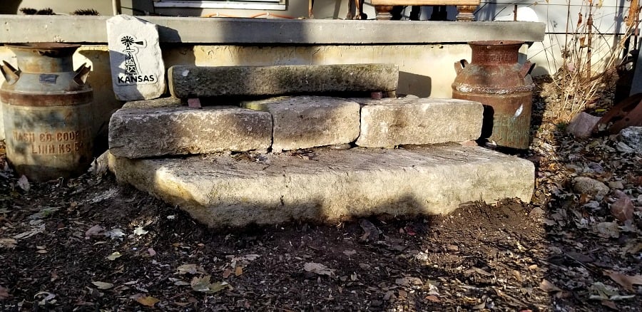 In the last week of November I added new limestone steps to the front porch. I had steps there originally, but they were too low to the porch and it was difficult for an older person to use. I rescued 7 large cut limestone blocks from the dump and used 4 to add on to these steps (the top 4).