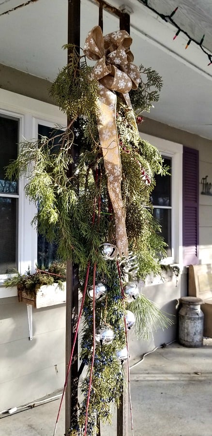 Most years, I add a lot of greenery to my porch and house for the Christmas, but this year I just did these hanging swags and the window box behind.