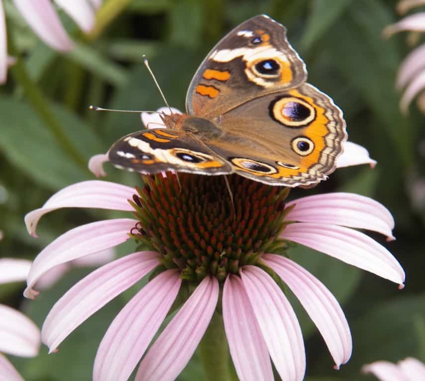 2. Purple Coneflower (Echinacea purpurea) Cultivars: ‘Sombrero Salsa Red’ ‘Wild Berry’ ‘Magnus’ ‘Cheyenne Sky’ Purple coneflower is another favorite among gardeners across the temperate world. Used in landscapes, meadows, and prairie gardens, this perennials is a great addition to any pollinator place. Purple coneflower likes well drained soils in full sun to part shade. It grows 2 to 3 feet tall and most plants are 1 foot wide. They do great in mass plantings and in clumps of 3 to 6 plants in a landscape. Butterflies and bees and others are attracted to the composite flowers of disc and ray flowers. It reseeds well so put it somewhere it can grow. Bloom time is from June to September.