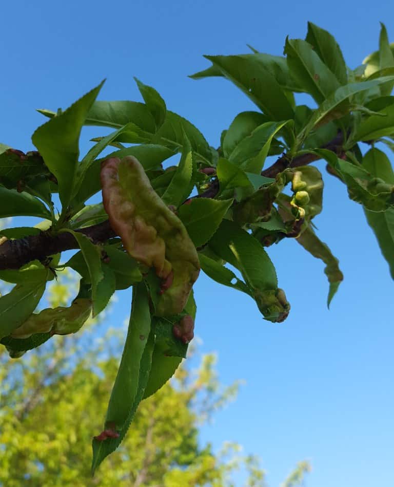After spraying peach trees in February, I was not expecting the outbreak of Peach Leaf Curl. This disease distorts the leaves and fruit and can cause fruit to drop prematurely. I suspect the chemical I had used for spraying was damaged, either by heat or cold, but I may never know for sure.