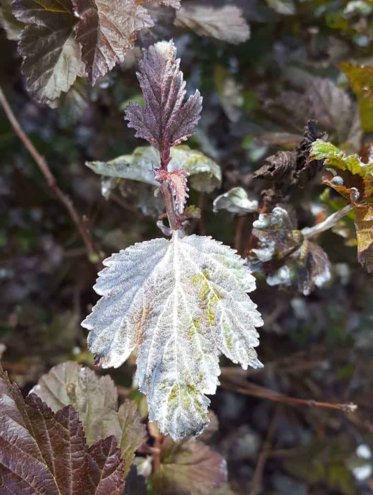 Powdery mildew on ninebarks killed several larger, older plants. We saw damage on ‘Diablo’ and ‘Center Glow’, but the disease did not show up on ‘Little Devil’ at all.